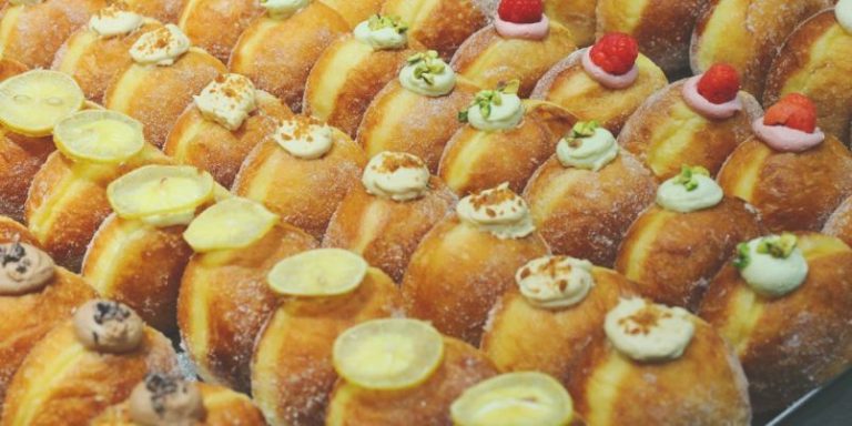 食べられるお花をあしらった焼きドーナツは、見た目もかわいらしく食べるのがもったいないほど。