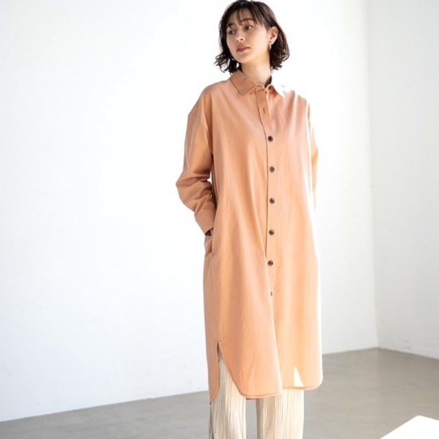 フレッシュなピンク色のリネンシャツ。