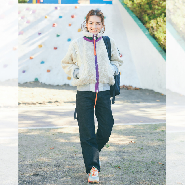 ダウンベストとニットワンピースの相性は抜群。上下の切り返しがスタイル良く見せてくれて、肌寒い日のお助けアウターにぴったり。ヒールを合わせるとカジュアルなのに女性らしくて大人可愛いコーデになります。