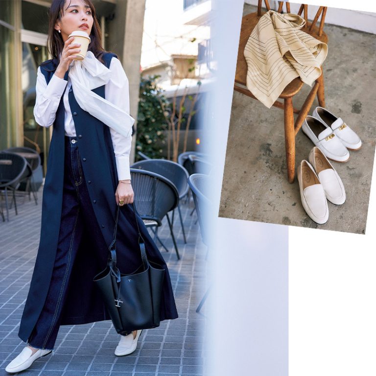 寸胴に見えないように、細ベルトでウエストマークしても可愛いですね!太いベルトだと野暮ったくなるので、要注意。ちょっと高めの位置にオンして足長効果も狙いましょう!