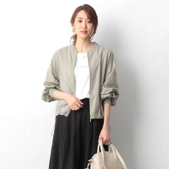 ふんわりスカートを使ったコーディネートは、ロング丈のカーディガンやシャツワンピースを羽織って縦のラインを意識してみて。