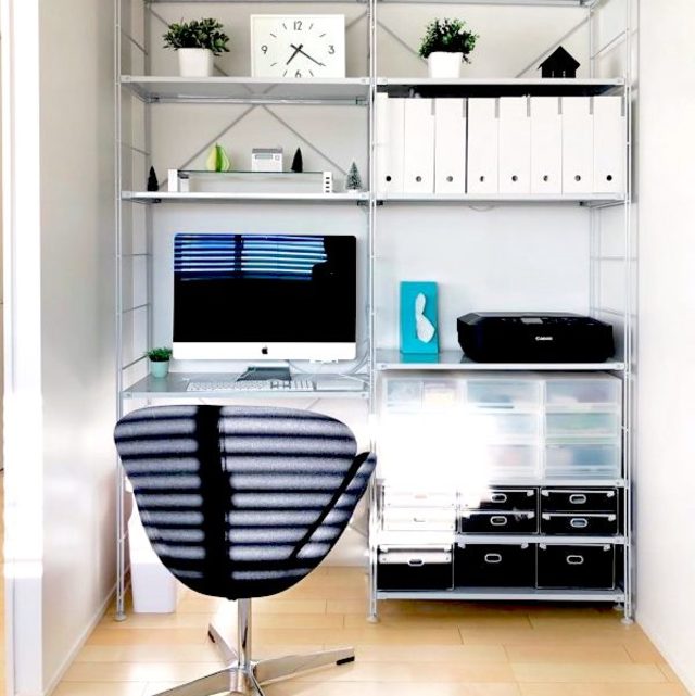 デスク周りに置いておきたい資料などの収納は、シンプルなボックスを使用することで、すっきりとおしゃれに!