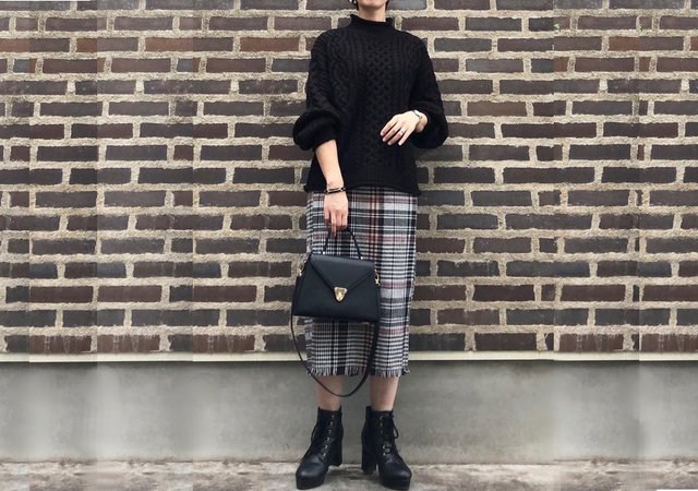 パンプスやバッグも黒でまとめて、シックな着こなしを目指しましょう。