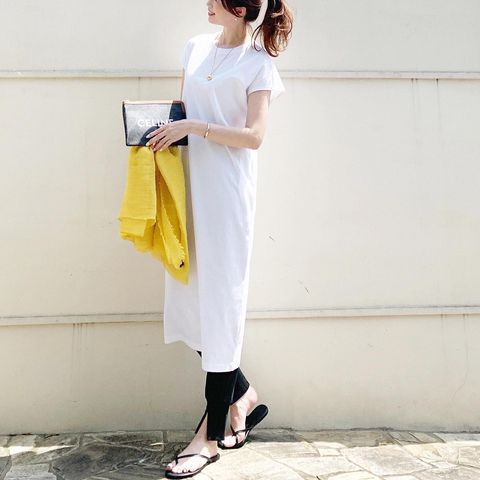 こちらは、様々なボトムスと合わせやすい絶妙な丈感とゆったりシルエットで、大人のカジュアルコーデにぴったりのアイテム。二の腕が隠れる袖丈で体型カバーもできるのも嬉しいポイントです。