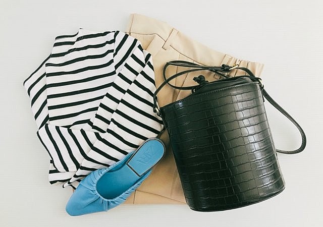フレンチマリンの定番ブランドORCIVALのトートバッグはスタイリングを選ばない人気アイテム。ハリのあるしっかりした素材で型崩れの心配もありません。