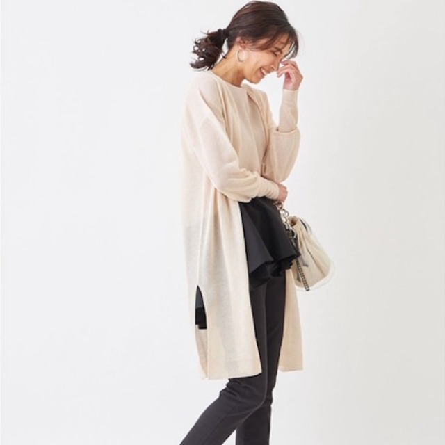 体のラインを拾いにくく、Tシャツ素材なので、レースのタイトスカートとあわせてもキメすぎな感じになりません。