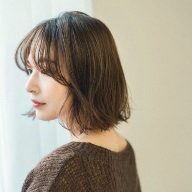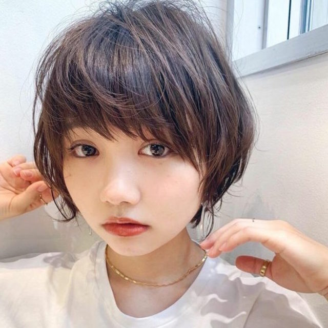 小顔が叶う前髪アレンジ。前髪は黒目の外側をおろすのがポイント。頬骨が隠れて小顔が叶います。