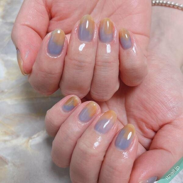 深みネイビーN27はインパクトがありますが、塗りかけネイルに少し使うとちょうどいい差し色になります。ブルーグレーN28をメインにしているので、カジュアルなデザインでも大人っぽく仕上がっていますね。