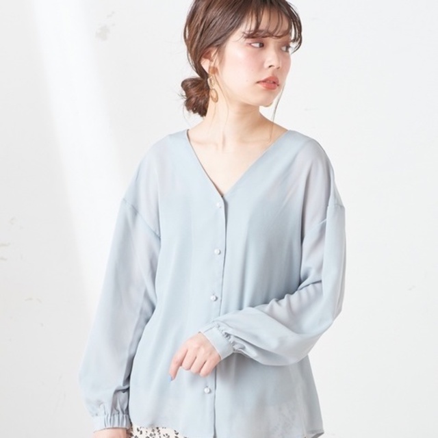 シアー感のあるトップスを使うことで、トレンドも取り入れてイマドキな印象にしています。