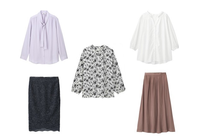 キレイめスカートと組み合わせて足元からカジュアルダウン。女性らしいデザインなので、外し過ぎず程良いバランス感に仕上がります。