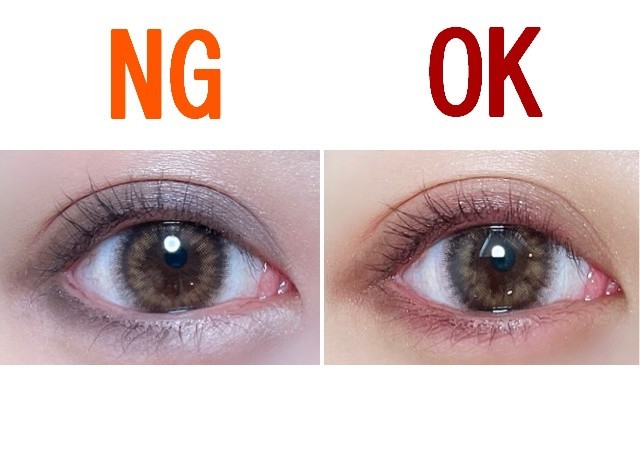 二重ラインの外側(上)に、ダークブラウンのアイシャドウをシェードブラシでのせます。目をすこし伏せた状態にして二重ラインの内側(下)に入らないように注意しましょう。また、上にいくほど色が薄く出るようするのがポイントです。
