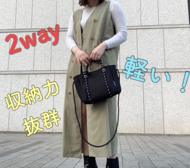 斜めがけして袖を結ぶのもこなれていておしゃれ。季節やトレンドにとらわれないニュートラルなカラーをとりそろえているので、どんなオフィスコーデにも合わせやすそうです。