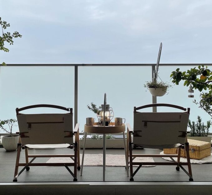 ベランダを大胆リメイクするならパラソル!テーブルとチェアーを置けば、自宅のベランダがお洒落なオープンテラスに変身です。