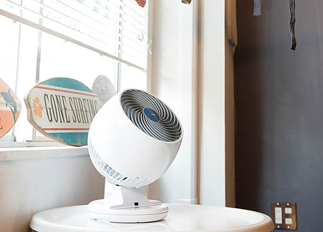 コンパクトながら18畳の適用畳数があると言われるサーキュレーター。エアコンと併用すると、部屋の空気がうまく循環して冷暖房の効率があがります。雨天時の部屋干しや、冬場の暖房効率アップにも大活躍。一年を通して一台あると重宝するアイテムです。
