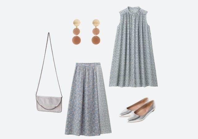 それではこちらのワンピースを4パターンで着まわしたいと思います。