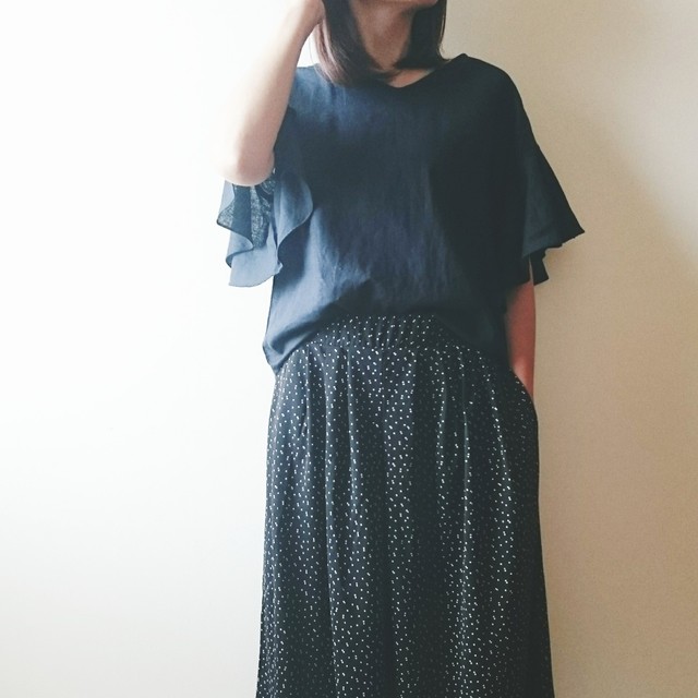 共布ベルトでウエストマークすれば、メリハリのあるシルエットが叶います。