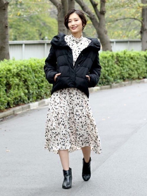 合わせるならスカートで♡ブラックダウン×スカートコーデ見本