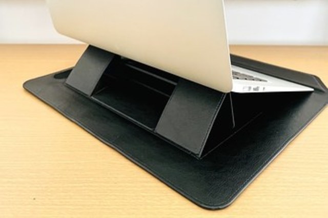 これは作業が捗るわ…!アマゾンで買った「スタンドになるPCケース」家でも外出先でも大活躍です。