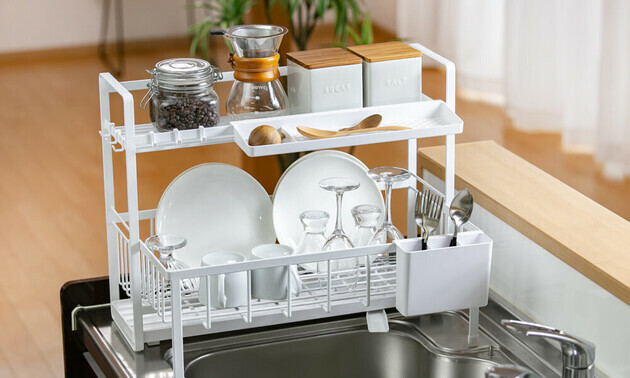え、買えるのココだけ!?[山崎実業]towerの「水切り」伸縮タイプだから「劇狭シンク」でも余裕