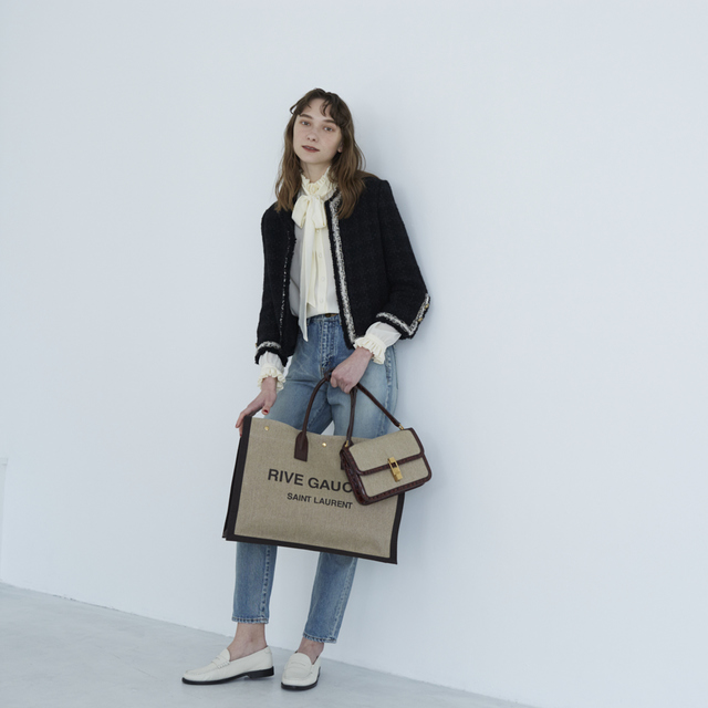 リラックス感のあるスタイルに合わせて。キャンバス素材の《サンローラン》の「リヴ・ゴーシュ」&「カレ」コレクションのバッグ[FUDGE GIRLのためのアクセサリークリップス]