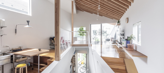 染織作家の家1階は土間のアトリエ、見晴らしのいいリビングを3階に
