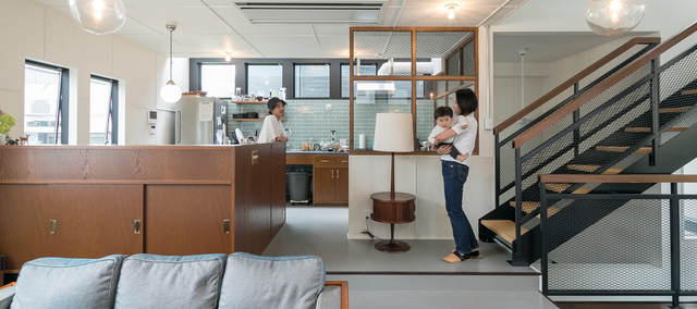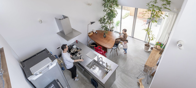 旗竿敷地の賃貸併用住宅箱がずれてつながる大空間で外とつながりつつ楽しく暮らす