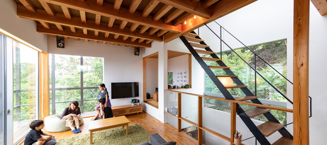 2階レベルに平屋をつくる居心地の良さを生む多方向への抜けの良さ