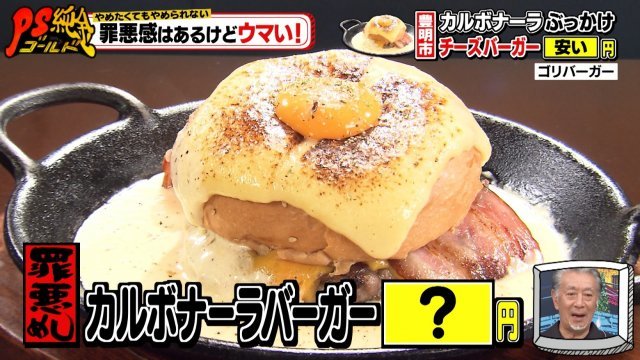 やめたくてもやめられない罪悪めし!極厚チーズのカルボナーラバーガー&激盛りソフトクリーム『PS純金(ゴールド)』