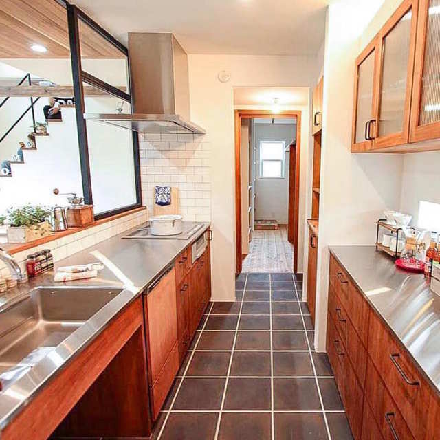 レンガ調タイル&クロスを採用♪[キッチン]のナチュラルインテリア実例