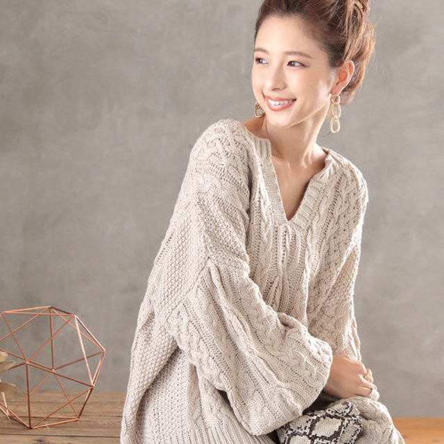 キーネックニットコーデ15選♪旬のデザインで定番ボトムスも今っぽく