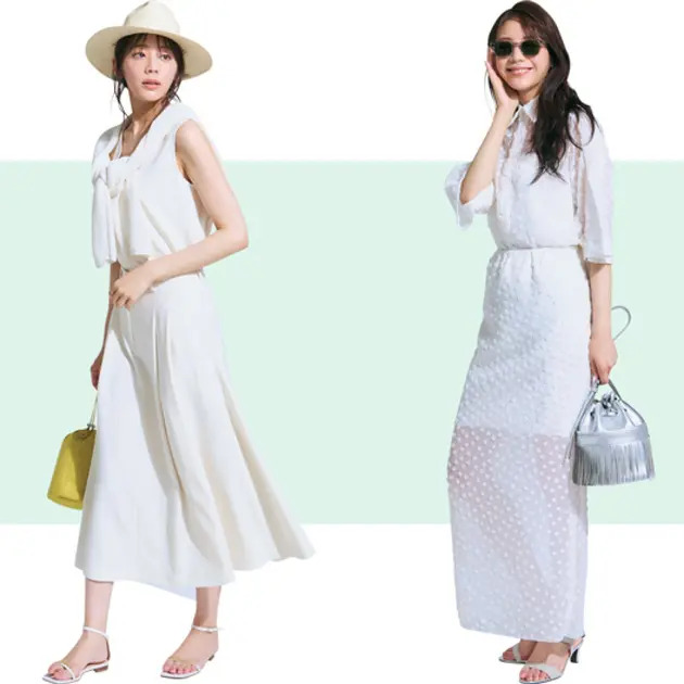[秒でサマ見えする夏向きスカートセットアップ]細見え必至!洒落感抜群セットアップのホワイトコーデ