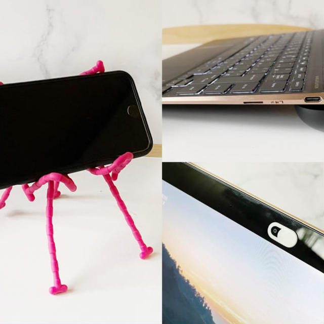 [セリアのガジェット]リモートワークが快適に!PCスタンド、ウェブカメラスライドカバー、スマホスタンドをレビュー♡