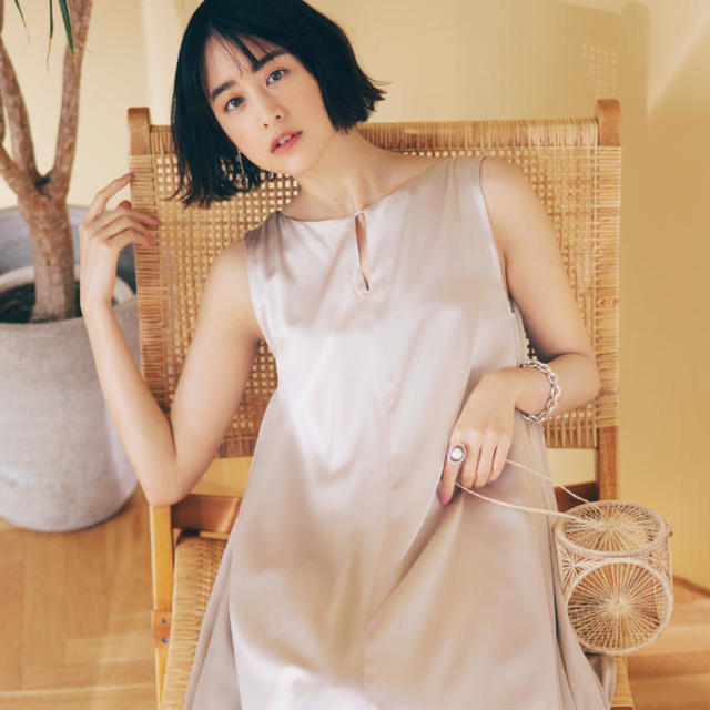 [2021最強ワンピース]シンプルな黒&美女感つや素材のコンビが、ラクして女っぽいの正解!