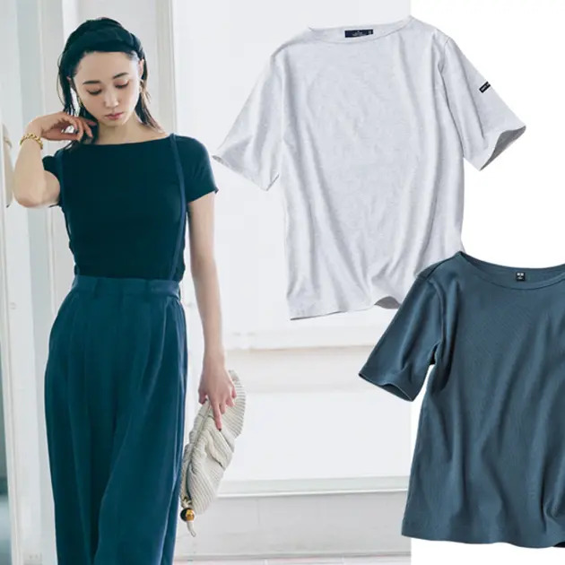 [きれいめ派におすすめのTシャツ]デコルテから肩のラインまで美しく“ボートネック開き”Tシャツ