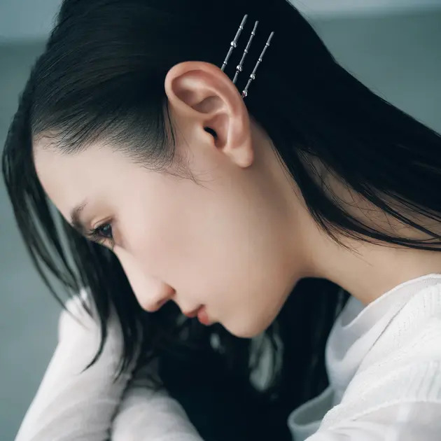 [ヘアアクセとアレンジのベストバランス]さりげなく大人可愛い! 細シルバーピン、細リボンのヘアアレンジ