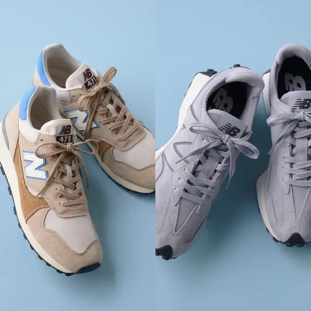「New Balance(ニューバランス)」のブラウン&グレーのスニーカーが、30代きれいめ派の通勤服によくなじむ[2025年春の最新スニーカー]