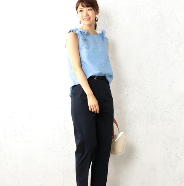 きれいめ大人女子になりたいなら♡ネイビーの美脚見えパンツを着こなしてみよう♪