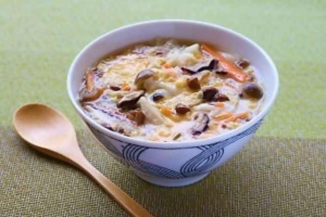 [今日のダイエット献立]忙しい朝でも手軽に栄養を♪キノコ雑炊の献立<523kcal>
