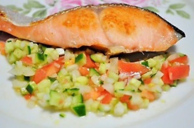 [今日のダイエット献立]美肌も◎鮭のトマトビネガーソースの献立<599kcal>