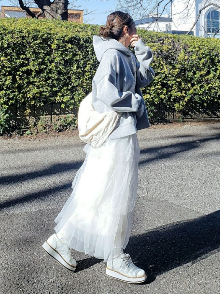今の時期ちょうどいい!春らしい「スウェット×スカート」コーデ